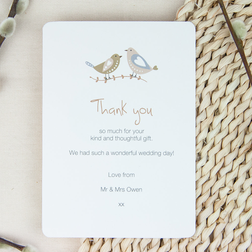 Send your heartfelt thanks in style with our beautiful personalized wedding thank you cards. Choose from our collection of designs or create your own using your favourite wedding photos. Our thank you cards are printed on high-quality cardstock for a premium feel. You have the option to include a personalized thank you message or leave them blank for handwritten notes. Our in-house graphic design team will provide a FREE personalized digital proof within 24 hours for your review and approval. With our same-day dispatch service, you can expect quick delivery. Coordinate your thank you cards with your 'before the day' wedding invitations to create a cohesive and stylish theme. Show your appreciation in a meaningful way with our exquisite wedding thank you cards.