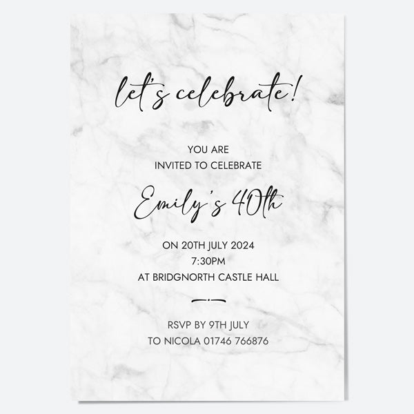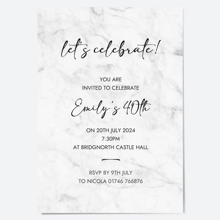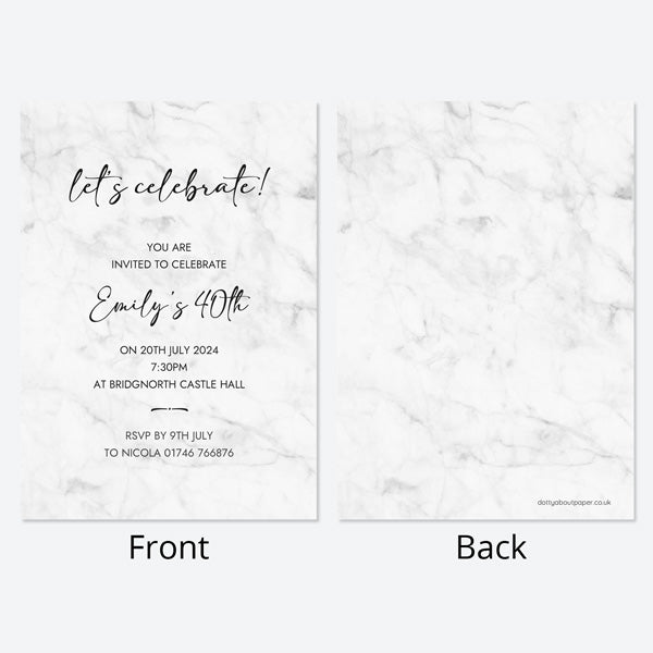40th Birthday Invitations - Grey Marble - Pack of 10