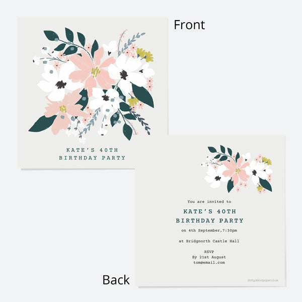 40th Birthday Invitations - Blush Modern Floral - Bouquet - Pack of 10