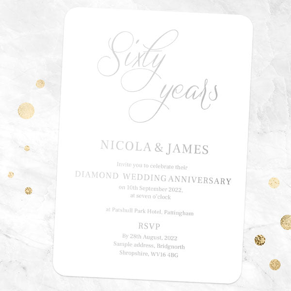 60th Foil Wedding Anniversary Invitations - Elegant Script - Pack of 10