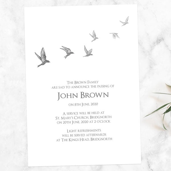 • Funeral invitation card measurements: 105mm x 148mm (A6).