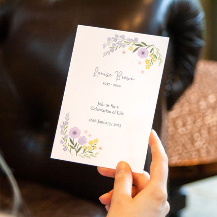 • Celebration of Life Invitation measurements: 105mm x 148mm (A6).