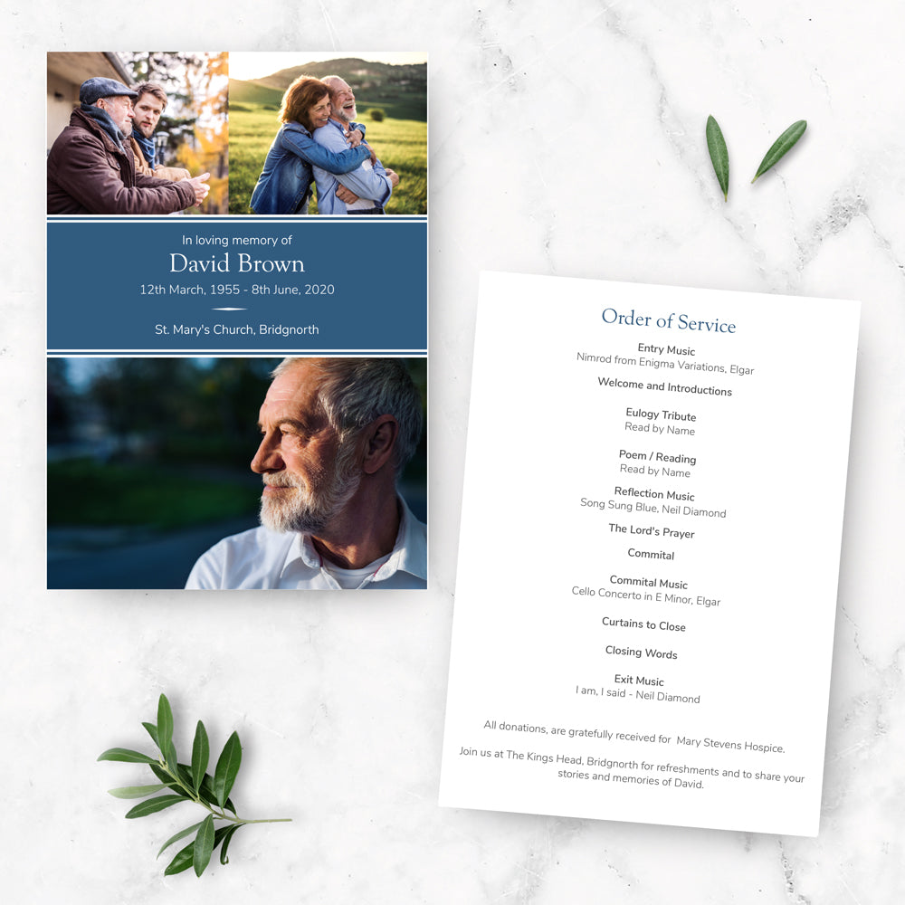 Funeral Order of Service Card - Blue Photograph Memories