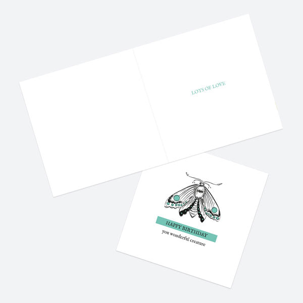 General Birthday Card - Bug Love - Moth - Happy Birthday You Wonderful Creature