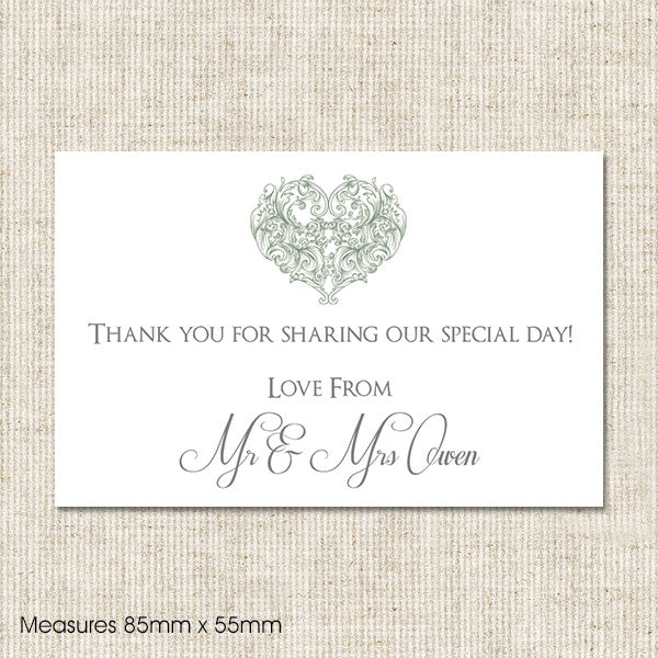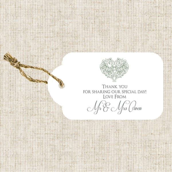 Scalloped Tag with Rustic String (8 x 4.5 cm) - scalloped shape tags with a hole, printed with your own personalised wording. Supplied with rustic string (self assembly required).