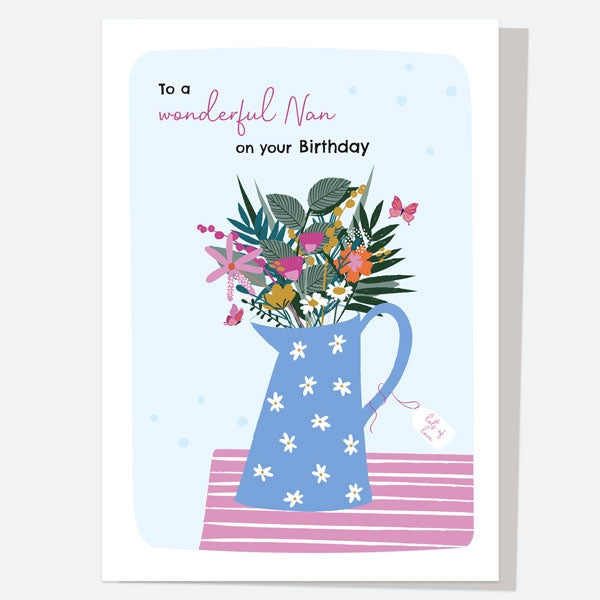 Nan Birthday Card - Pretty Wildflowers - Jug - Wonderful Nan